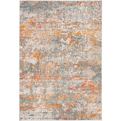 Constructed using a state-of-the-art Power Loomed technique, the rug boasts a durable blend of 57% Polypropylene, 30% Cotton, and 13% Polyester, ensuring longevity and ease of care. The rich colors of orange and light blue create a warm, inviting atmosphere, while the intricate rug pattern mesmerizes with its traditional charm infused with contemporary sensibilities.
