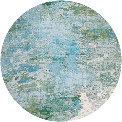 Enhance your living space with our contemporary round rug, measuring 3 feet in diameter and crafted with a harmonious blend of green and blue tones. This power loomed piece from Turkey combines modern style with practicality, offering a versatile accent for any room. Made from 57 percent polypropylene, 30 percent cotton, and 13 percent polyester, it embodies a thoughtful design that balances comfort with durability. The 3/8 inch height provides a soft underfoot feel without compromising on strength. With no pattern to distract, this rug allows your existing decor to shine while adding a splash of color. Elevate your home's design effortlessly with this stylish and understated piece.