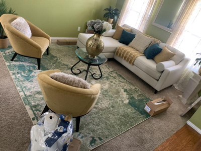 A nice neutral pattern for our nature themed room. A little texture and color but not too bold. I looked for “green rugs” for ages, excited to finally find this one on sale too!