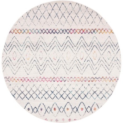 Elevate your living space with this exquisite round area rug, measuring 6 feet 7 inches by 6 feet 7 inches. Crafted with precision in Turkey, this rug features a power loomed weave technique, ensuring meticulous attention to detail. The beautiful cream and silver hues create a soothing and elegant ambiance, perfectly complementing any decor style.