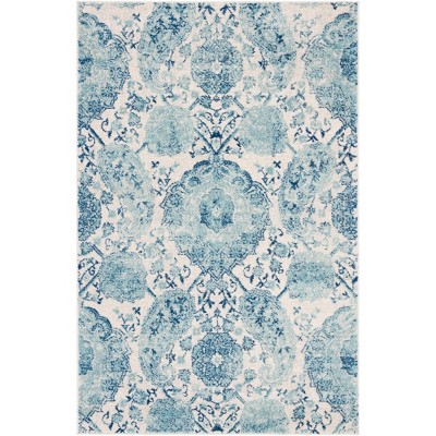 Elevate your living space with this exquisite area rug, designed to complement any room with its delicate ivory and blue hues. Measuring 3 feet by 5 feet, this small rectangular rug is the perfect addition beneath coffee tables or in cozy reading nooks. Crafted with precision, the power loomed technique ensures an impeccable finish with a soft 3/8 inch height.