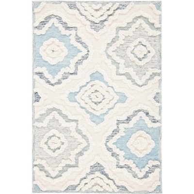 Elevate your living space with the harmonious blend of comfort and contemporary style offered by our 4' x 6' Cream / Turquoise Area Rug. This small rectangle rug boasts a pile height of 3/8", providing a plush underfoot experience while maintaining a sleek profile, perfect for any room in your home.