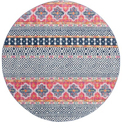 Elevate your home decor with a stunning round area rug, designed with a unique transitional style. The rug measures 4 feet by 4 feet and features a sophisticated blend of navy and silver hues. Crafted in Turkey using power loomed technology, it is made from durable polypropylene, offering both style and practicality. The rug's low 3/8 inch height ensures easy placement and maintenance. Perfect for adding a touch of elegance to any room, this rug seamlessly fits in with various design themes. Enjoy the beauty and functionality of this versatile piece, bringing a new dimension to your living space.