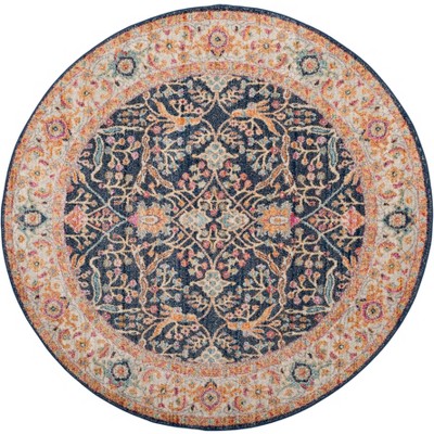 Madison MAD609 Power Loomed Indoor Area Rug - Cream/Navy - 6'7" round - Safavieh.
