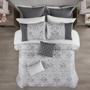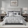 Madison Park 12pc Queen Grace Jacquard Comforter Set with Bed Sheet Silver