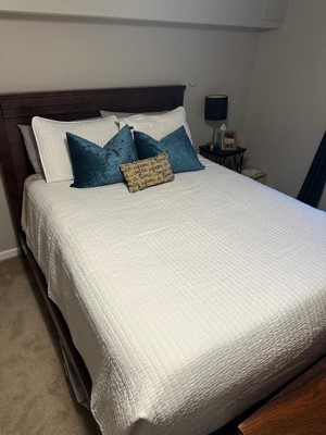 [This review was collected as part of a promotion.] This coverlet with matching shams is so soft. I love the bright white color which goes with any color scheme you might have. The quilted sewing is of a high caliber. It’s shown in my queen sleigh bed but will also fit a full mattress nicely. It is lightweight but great for layering all year round.