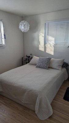 [This review was collected as part of a promotion.] I received this product for free from Madison Park in exchange for my honest review. I got this in the queen size and it fits our bed really nicely. It is solid white and has a striped quilt pattern on both sides of the quilt and the front of the pillow shams. It's not thick, so it can be used year round. This feels really soft with a cotton/poly/rayon blend (90%, 8.1%, 1.9%), but with that blend, I do think quality is forsaken. The material is stark white and thinner than our usual quilts. The pillow shams aren't quilted on the back side, which which makes the back side of the pillows not entirely opaque, as I showed in one of the pictures. The pillow shams fit nicely, but again, they're not opaque on the opposite side. Overall, the quilt is nice, but the pillow shams make it feel on the cheaper side. I think we'll use it in our guest room because I don't think it would last more than a couple of years as an everyday quilt.