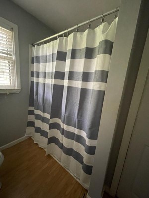 [This review was collected as part of a promotion.] Okay so taking pictures in my bathroom is hard lol but I love this shower curtain! It’s super sure. Feels really rough. For my shower it’s a little long but that okay. But definitely worth it for the price!