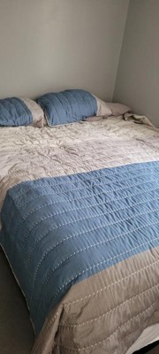 Bring a cozy casual vibe to your bedroom with the Madison Park Drew quilt set. A color block design in soft colors are printed on the face of the quilt and complemented by a solid taupe reverse, for a farmhouse look. The channel quilting adds texture and the polyester filling provides plenty of warmth, making it great for single use in the summer or as an extra layer in the winter.