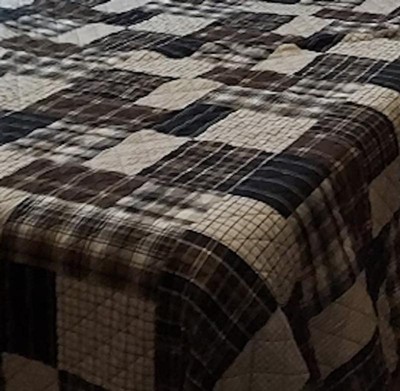 [This review was collected as part of a promotion.] I love this rustic coverlet set & the colors are beautiful and vibrant. It features an appealing patchwork print on one side, which flips over to a clean and stylish plaid print on the other. The patchwork print, in shades of brown and beige tones, complements the guest bedroom decor. My favorite feature is the lovely plaid print on the reverse side. It's machine washable and easy to care for. I'm happy with the set and highly recommend it!