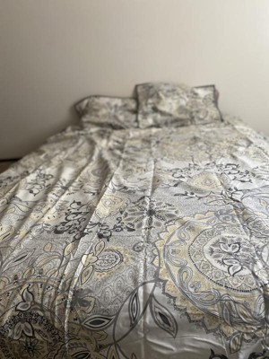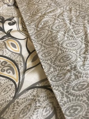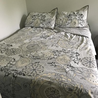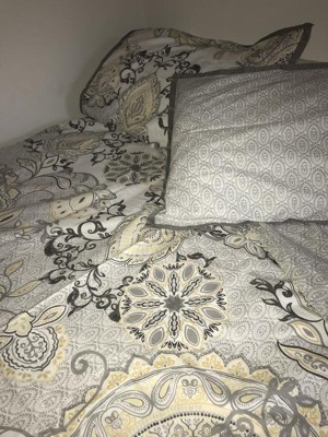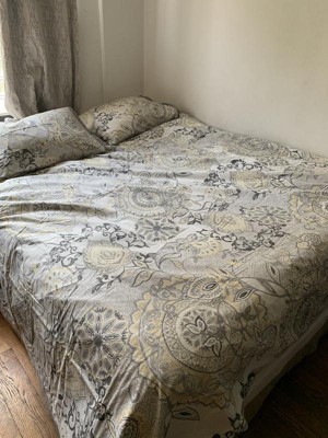 [This review was collected as part of a promotion.] I received this gorgeous 3 piece cotton floral printed in yellow grey . It’s reversible from a floral print to grey. The set comes with two shams for your decorative pillows to go in . I washed the set before I used it , as it made it softer to sleep on .