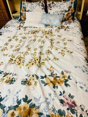 [This review was collected as part of a promotion.] This cotton floral comforter set is a beautiful choice for a chic bed. The comforter and matching pillowcases are perfect. The two extra pillows are also beautiful. I loved the filling detail of the duvet. The set has a floral print design with blue colored borders, which added a touch of elegance and refinement. The pillows have pleated and embroidered floral details, adding value when decorating the bed. I loved that they are hypoallergenic, have a soft texture and are pleasant to the touch. Made my room more beautiful. I'm in love