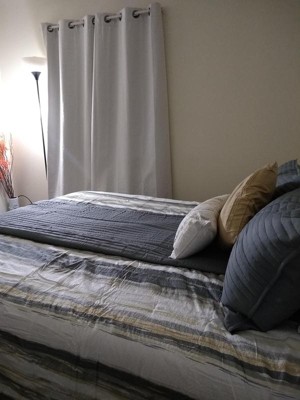 [This review was collected as part of a promotion.] I ordered Marina 8 Piece Printed Seersucker Comforter and Coverlet Set Collection to replace my old comforter set in my bedroom. I was looking for something in blue to give a calming feeling in the space. This beautiful set does that for me. When I look at my bed in this set, it makes me want to take a long nap. This collection comes with everything you need. It contains a comforter, a coverlet, 2 standard shams, 2 decorative pillows and 2 standard quilted shams. When you put it all together on the bed, it looks like a million bucks. I am quite happy with my selection.