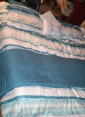 - Serene and tranquil watercolor printed 8 piece seersucker comforter and quilt set