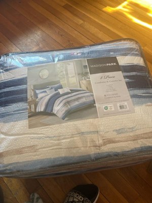 [This review was collected as part of a promotion.] I really like this Madison Park comforter set. The set comes with 8 pieces and I got it in the King size. My bed is a queen but has high mattress & box spring and this comforter and coverlet fit it great. It is very comfortable and cozy to sleep under. I really like that it includes a coverlet as well. It is well made abd looks great in my room. There are shams that match both the comforter and the coverlet. The decorative pillows match the set well too. I'm very pleased with the whole set.