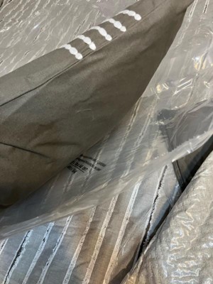 A: Hello Customer, thank you for reaching out. This Madison Park Essence Cotton Clip Jacquard Comforter Set Gray includes two pieces 20 inches long by 20 inches wide and one piece 20 inches long by 14 inches wide decorative pillows. For more detailed features of this product, you can find them by clicking the Show More button below the about the product section. Hope this helps let us know if you have further questions.