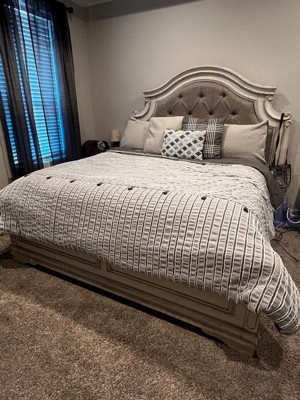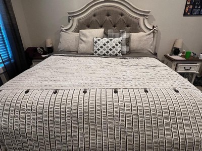 - Casual farmhouse style cotton clip jacquard pieced with decorative button comforter set