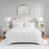 This Madison Park Josie shabby chic cottage style comforter set features elastic embroidery creating both small and large square shaped ruching, giving the bedding set a stylish puffy appearance. Also included are two matching shams featuring small ruching to complete the look. Available in multiple colors: soft white and warm grey.