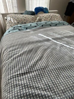 [This review was collected as part of a promotion.] This blanket is not only stunning, but it’s soft and cozy! The twin size was sent to me and it’s the perfect size for a twin bed (obviously), but also perfect for cuddling up on the couch! Praying this blanket holds up after washing because I LOVE IT! Also, super cute with one side being boxes and the other side stripes! I’m obsessed!