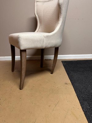 Define your dining area with the elegance of the Troy Dining Chair. This pholstered wingback style dining chair features clean lines and curve, for a sophisticated silhouette. The straight rubber wood legs feature a smooth reclaimed gray wood finishes that complements the upholstery to create a beautiful transitional look in your dining room. Assembly is required. Max weight capacity: 300 lbs.