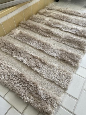 [This review was collected as part of a promotion.] Beautiful rug. Nice furry and soft on feet. Non skid backing made it stay in place and hasn’t budged! It’s the perfect size for in front of the sink. Nice neutral light tan color. So far I would buy it again!