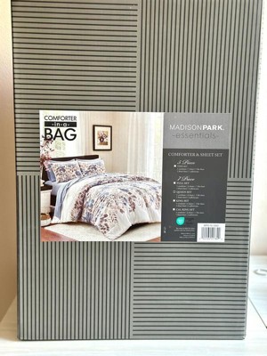 Create a calming oasis in the bedroom with the Madison Park Essentials bed-in-a-bag. This beautiful comforter set features watercolor floral print across the center of the bedding, complete with matching shams. The included sheet set features a coordinating diamond design to complement the soft and cozy comforter's look. This set is machine washable in a large capacity commercial washer/dryer for best care.