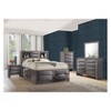 The Picket House Furnishings Madison Queen Storage Bed features four drawers in the footboard, one in each rail, two in the headboard and two shelves, you'll never run out of storage space! Its gray finish and contemporary, contoured drawers give it a custom look. Add this bedroom staple to your home today for a look you will love to come home to, day after day.