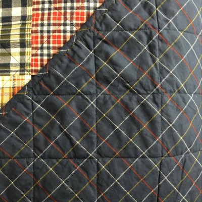 The Eddie Bauer bedspread is a medium/heavy weight— a warm cover for recent below-zero wind chills. Reversible side is a nice tattersall plaid. It may look like the quilt is pieced, but it is not. This bedspread is not particularly soft (yet)— it is cotton, though, so with washes it should begin to soften. The hem is evenly rolled around the perimeter. My only complaint is that an inch of decorative diamond-pattern stitching pulled out on day 2 of use. I am handy with a machine and can fix it, fortunately. If you are looking for a bedspread, this is a nice choice. It’s rustic and rugged-looking. If you are hoping for a quilt with soft inch-high batting like your grandma may have pieced together, this is not what you want. Since it is not pieced, it will wear well with kids and pets. Just keep an eye opened for occasional pulled decorative stitching. (My photo shows the reverse side).