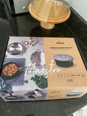 Alva Maestro nonstick pans give you 20% more space and reduce oil for healthier cooking. Pots feature handy inner markings for easy measuring, and vented stainless steel lids prevent boiling over. Made with safe, high-quality materials, this versatile cookware works on all stoves and ovens up to 400F. Enjoy stress-free cooking and cleanup with a collection designed for everyday family meals