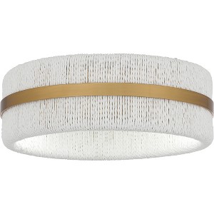 Inspired by a classic drum silhouette, Maeve flush mount lights add an element of coastal style to any interior space. The brushed gold option features a white rope shade, while the matte black option features ivory rope for a subtle contrast. Both choices feature a subtle metal band accent, making Maeve a perfect complement to any home decor.