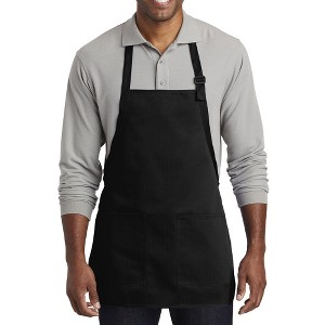 Stay neat and organized with this durable apron, crafted from a sturdy 7-ounce poly/cotton twill blend. Designed for comfort and convenience, it features an adjustable neck strap and multiple pockets to keep essentials close at hand. Ideal for kitchens, cafes, or crafts, it offers reliable protection and a clean, professional look.