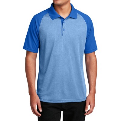 Mafoose Men's Short Sleeve Moisture-Wicking PosiCharge RacerMesh Raglan Heather Black Polo T-shirt True Royal Heather/ True Royal XS