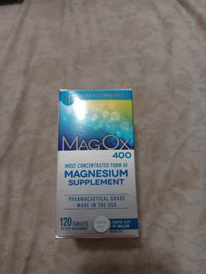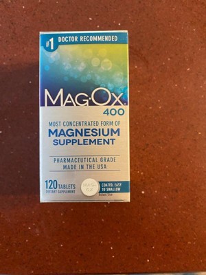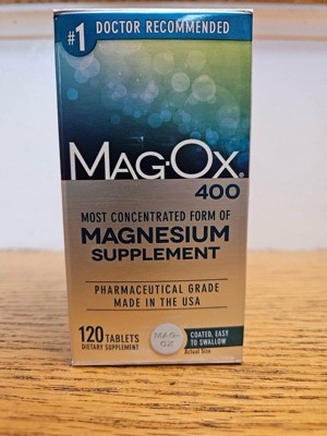 Mag-Ox is a mineral supplement made from magnesium oxide – the most concentrated form of magnesium available: Mag-Ox is the no.1 pharmacist recommended magnesium supplement used throughout the body for a wide variety of functions. Magnesium supports over 300 chemical reactions in the body – and Mag-Ox is at the center of them all: Magnesium is critical in helping convert carbohydrates, protein and fat into energy – helping support the formation and release of energy from cells. Mag-Ox delivers the purest form of magnesium, to help you live a longer, healthier life: Mag-Ox magnesium tablets are sugar free, gluten free, and do not contain corn, soy, milk, eggs, shellfish, fish, yeast or animal byproducts. Mag-Ox magnesium supplements are coated for easy swallowing; take 2 tablets daily with food or as directed by a healthcare professional; you may only need to take 1 tablet per day. *Inconsistent and inconclusive scientific evidence suggests diets with adequate magnesium