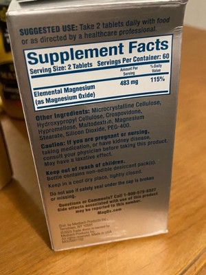 [This review was collected as part of a promotion.] Mag-Ox Magnesium Supplements have 115% of the daily recommended amount of Magnesium in two tablets. They are easy to swallow and are free of most allergens. I think these are a great option if you are in need of a magnesium supplement.