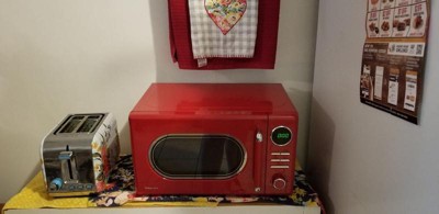 [This review was collected as part of a promotion.] Can a microwave be cute? I think so!! It perfectly matches my decor in my kitchen. The set up took a minute to figure out, but I finally got it!! It does a really good job on heating stuff up. Love how easy it is to switch the power levels! And it's pretty safe, I love using it!!