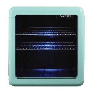 The Magic Chef 1.7-Cu. Ft. Retro Beverage Cooler in Green will be the ideal addition to any dorm, office, or rec room. The stylish nostalgic look will complement any decor. The LED blue lighting showcases your beverages. The tinted double-pane glass door is more energy efficient than single-pane glass and helps prevent condensation. There are 2 removable wire shelves which can be adjusted according to your beverages. The beverage cooler offers a 1-year parts-and-labor warranty and 5-year compressor-part warranty._