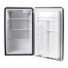The Magic Chef 3.2-Cu. Ft. Retro Mini Fridge in Black is a stylish addition to any dorm, office, rec room or kitchen. The all-refrigerator design features 3 adjustable glass shelves so you can modify the interior to suite your needs. The in-door storage racks are ideal for grab-and-go beverages, snacks, and condiments and includes a can dispenser. An interior LED light makes it easy to see what you have and an adjustable temperature control ensures the fridge is the ideal temperature. This compact refrigerator is ENERGY-STAR Certified and offers a 1-year parts-and-labor warranty and 5-year compressor-part warranty.