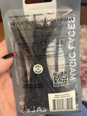 The back of the package has a QR code to scan that gives you instructions to "find your fit." Guess what? It takes you to the Magic Laces [dot com] website --- which no longer exists. It seems the company has completely gone out of business. Even the address on the back of the package is just some apartment building in NYC. I guess it's not as hard to get into Target as they'd have you believe on "Shark Tank" because there's no way Target vetted this company before agreeing to sell their product in stores. The product may have a "6 month warranty" but good luck getting a defunct company to honor it. I'm incredibly disappointed that Target is still selling these items in stores and not even in the clearance bin! They're selling them for full price.