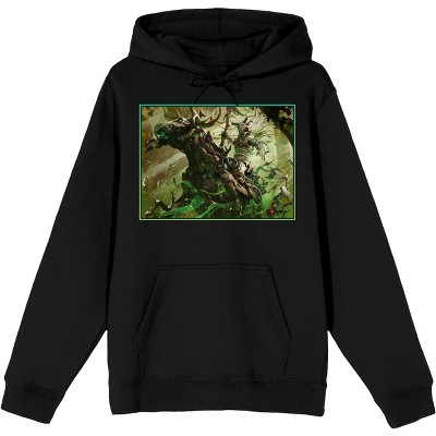Celebrate your favorite card game with this Magic the Gathering sweatshirt. The hoodie features an image of an elemental knight wrapped in lightning. The sweatshirt comes in black and has an adjustable hood and a large pocket. Fans of the fun card battle will love this sweatshirt.