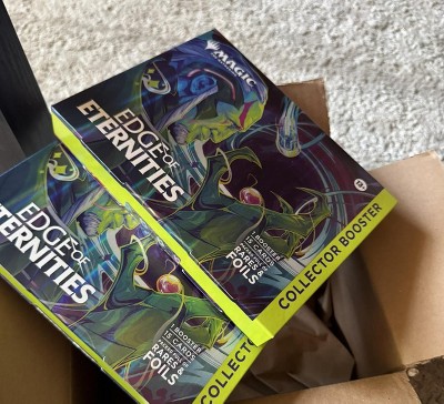 Bought two MTG Edge of Eternities Collector Omega Box and they sent me two optic basketball sets instead. I would suggest people try buying the otpic basketballs and maybe you will receive the Edge of Eteterntity Omega Collector packs. No promises that will work