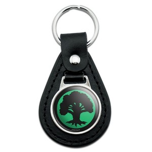 Magic The Gathering Green Mana Symbol Black Leather Keychain