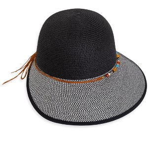Magid Beaded Crown Two Tone Straw Bucket Hat