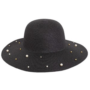 Add a touch of glamour to your summer wardrobe with the Magid Pearl-Embellished Straw Floppy Hat. This chic accessory features a stunning array of multi-colored pearls in silver, white, and gold elegantly adorning the brim, making it a perfect choice for any stylish outing. Whether you’re at the beach, a garden party, or enjoying a casual day in the sun, this hat effortlessly blends sophistication and functionality.