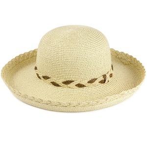 Elevate your summer style with the Magid Two-Tone Straw Scalloped & Braided Edge Kettle Hat. This elegant hat features a unique two-tone design with scalloped and braided edges, adding texture and sophistication to its timeless kettle shape. Made from 100% lightweight paper straw, it provides breathability and comfort, keeping you cool even on the hottest days.