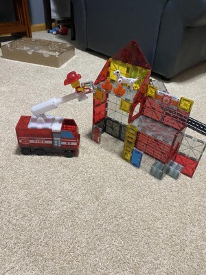 - What’s Included: 27 magnetic pieces, including the Pullback Chassis, Mix and Match Firefighter Figure and Fire pieces.