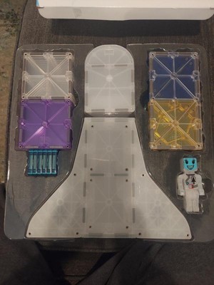- What’s Included: 32 magnetic pieces, including: 1 Space Shuttle, 1 Space Capsule, 1 Capsule Window, 1 Space Figure, 1 Wheeled Chassis, 1 Large Rectangle, 6 microMAGS Squares, 8 Right Triangles, 12 Squares.