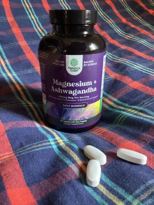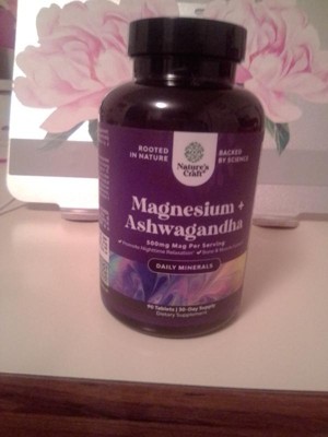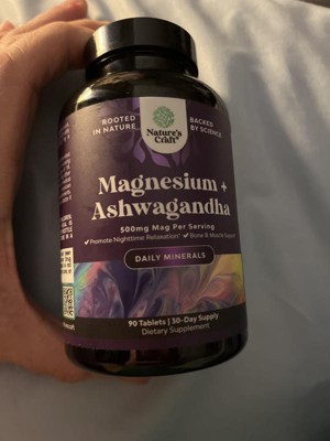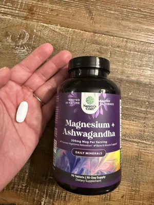Magnesium + Ashwagandha Tablets, Calming Magnesium Supplement for Mood Sleep and Relaxation, Nature's Craft, 90ct