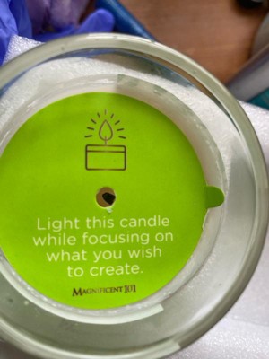 [This review was collected as part of a promotion.] I like the message wrapped around the wick before you light it. It says “ light candle while you focus on what you wish to create.” It has a nice subtle smell. It’s a good size to light on the occasional deep cleaning days.