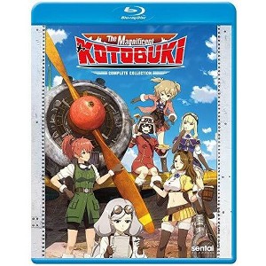 The Magnificent KOTOBUKI contains episodes 1-12 of the anime directed by Tsutomu Mizushima. In a desolate world where the safest form of transporting cargo is by zeppelin; air pirates roam the sky, preying on aerial commerce and holding remote towns for ransom. Against these airborne marauders, the only defense is to hire high-flying protection of your own, and that's where mercenary pilots like the girls of the Kotobuki Squadron come in. Behind the joysticks of their lightweight Nakajima Ki-43 Hayabusa fighters, these lady falcons play a deadly game of escort, where a single mistake can end up in a fiery crash or mid-air collision. But for birds of prey like Kylie, Reona, Chika, Emma, Kate, and Zara, the danger is worth it for the chance to spread their wings and soar into the heavens. The wild blue yonder gets even wilder as every dogfight becomes a catfight! Special Features: The Making of The Magnificent KOTOBUKI Part 1 & 2, KOTOBUKI Broadcast Part 1 & 2, Clean Opening Animation, Clean Closing Animation.