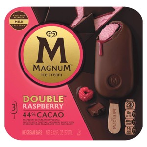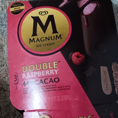 - Magnum's Double Raspberry Ice Cream Bar features raspberry ice cream double dipped in milk chocolate with a layer of luscious raspberry sauce.